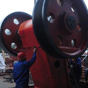 顎式破碎機俗稱(chēng)顎破,又名老虎口。由動(dòng)顎和靜顎兩塊顎板組成破碎腔,模擬動(dòng)物的兩顎運動(dòng)而完成物料破碎作業(yè)的破碎機。顎式破碎機在礦山、建材、基建等部門(mén)主要用作粗碎機和中碎機。按照進(jìn)料口寬度大小來(lái)分為大、中、小型三種,進(jìn)料口寬度大于600MM的為大型機器,進(jìn)料口寬度在300-600MM的為中型機,進(jìn)料口寬度小于300MM的為小型機。顎式破碎機結構簡(jiǎn)單,制造容易,工作可靠。顎式破碎機的工作部分是兩塊顎板,一是固定顎板(定顎),垂直(或上端略外傾)固定在機體前壁上,另一是活動(dòng)顎板(動(dòng)顎),位置傾斜,與固定顎板形成上大下小的破碎腔(工作腔)?;顒?dòng)顎板對著(zhù)固定顎板做周期性的往復運動(dòng),時(shí)而分開(kāi),時(shí)而靠近。分開(kāi)時(shí),物料進(jìn)入破碎腔,成品從下部卸出;靠近時(shí),使裝在兩塊顎板之間的物料受到擠壓,彎折和劈裂作用而破碎。